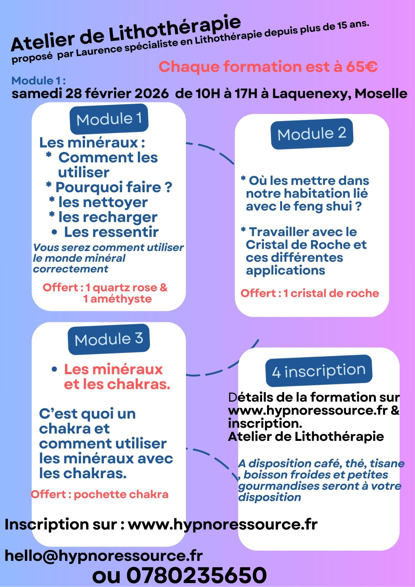 Programme des ateliers, formation de lithothérapie :